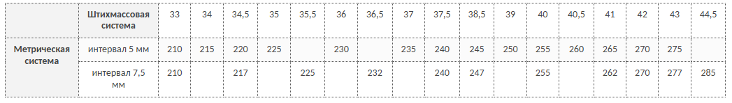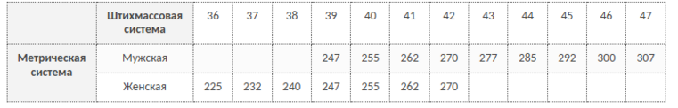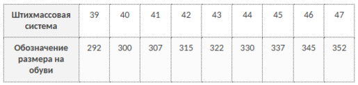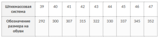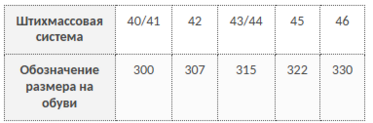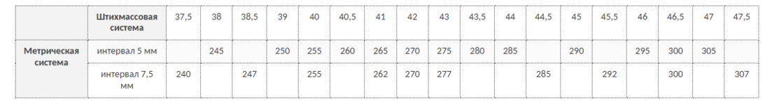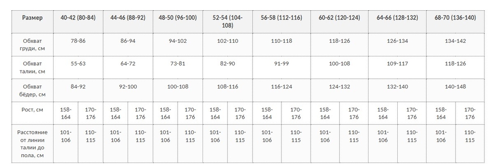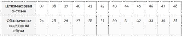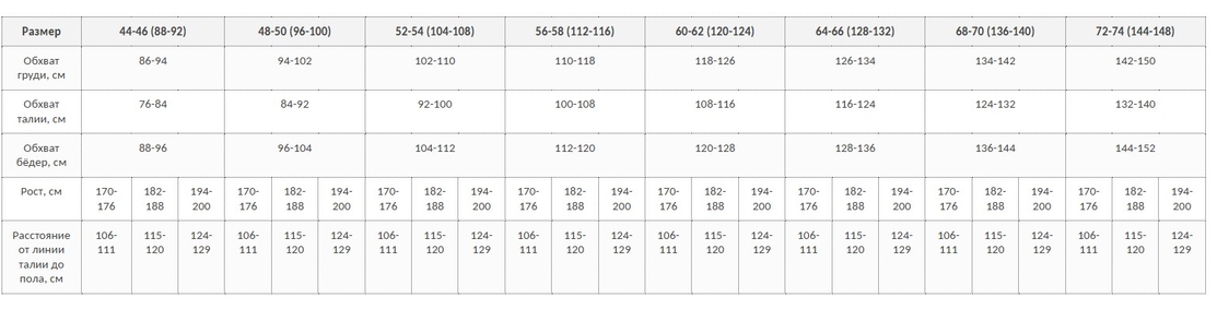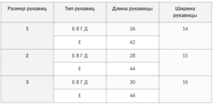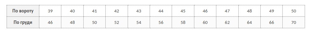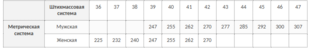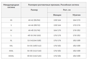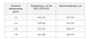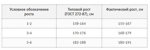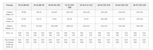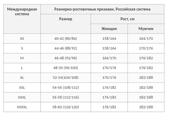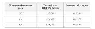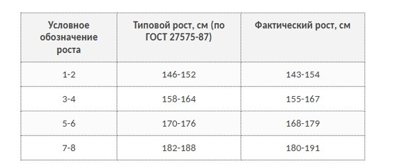 Таблица соответствия размеров и ростов